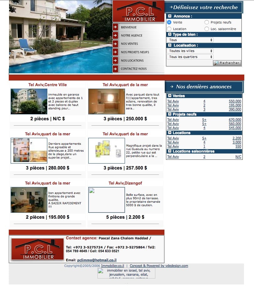 Janvier 2007: Nouvelle version du site, plus épuré, avec un nouveau logo, celui qui restera définitif jusqu’à ce jour… Nouveau moteur de recherche d’une agence avec sélection par ville Les Dernières annonces sont présentées à présent sous forme de liste qui défile Nouvel espace Infolive.tv avec l’actualité qui défile Nouvel espace “Coups de coeur“: annonces mises en avant en page d’accueil du site Nouvel espace “Maisons de Prestige“: mise en avant en page d’accueil et possiblité de rechercher parmi les biens de luxe en Israël